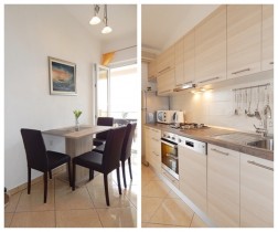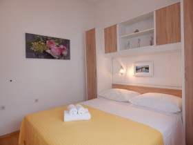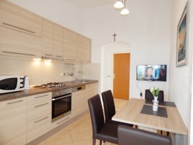 Ferienwohnung 1 hat eine Größe von ca. 60qm, ist für 4 Personen geeignet und befindet sich im ersten Stock des großen Hauses. Von hier hat man nicht nur einen wunderschönen Blick aufs Meer, sondern kann auch die umliegende Natur genießen. Die Ferienwohnung ist modern ausgestattet, verfügt über zwei Schlafzimmer, eine Küche und ein Badezimmer. Die Küche ist mit einem Geschirrspüler, einem großen Kühlschrank, einer Kaffeemaschine, einem Backofen und einer Mikrowelle komplett ausgestattet. Sie können das hauseigene WLAN, den LCD-TV (mit SAT-Empfang) kostenlos nutzen. Ebenfalls stehen ein Haartrockner, ein Bügeleisen inkl. Bügelbrett, sowie Handtücher und Bettwäsche zu ihrer Verfügung.