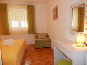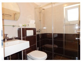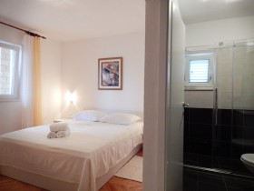 Ferienwohnung 3 hat eine Größe von ca. 85qm, ist für 5 Personen geeignet und befindet sich im Erdgeschoss des großen Hauses. Von hier hat man nicht nur einen wunderschönen Blick aufs Meer, sondern kann auch den wunderschönen Garten genießen. Die Ferienwohnung ist modern ausgestattet, verfügt über zwei Schlafzimmer, eine Küche und zwei Badezimmer. Die Küche ist mit einem Geschirrspüler, einem großen Kühlschrank, einer Kaffeemaschine, einem Backofen und einer Mikrowelle komplett ausgestattet. Sie können das hauseigene WLAN, den LCD-TV (mit SAT-Empfang) kostenlos nutzen. Ebenfalls stehen ein Haartrockner, ein Bügeleisen inkl. Bügelbrett, sowie Handtücher und Bettwäsche zu ihrer Verfügung.