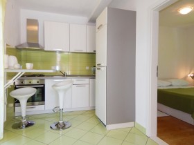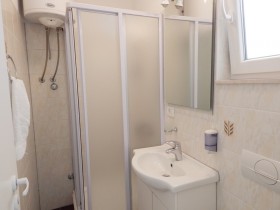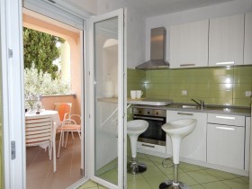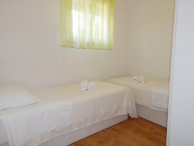 Ferienwohnung 5 hat eine Größe von ca. 45qm, ist für 3 Personen geeignet und befindet sich im Erdgeschoß des kleinen Hauses. Von hier hat man nicht nur einen wunderschönen Blick aufs Meer, sondern kann auch die umliegende Natur genießen. Die Ferienwohnung ist modern ausgestattet, verfügt über zwei Schlafzimmer, eine Küche und ein Badezimmer. Die Küche ist mit einem großen Kühlschrank, einer Kaffeemaschine, einem Backofen und einer Mikrowelle komplett ausgestattet. Sie können das hauseigene WLAN, den LCD-TV (mit SAT-Empfang) kostenlos nutzen. Ebenfalls stehen ein Haartrockner, ein Bügeleisen inkl. Bügelbrett, sowie Handtücher und Bettwäsche zu ihrer Verfügung.